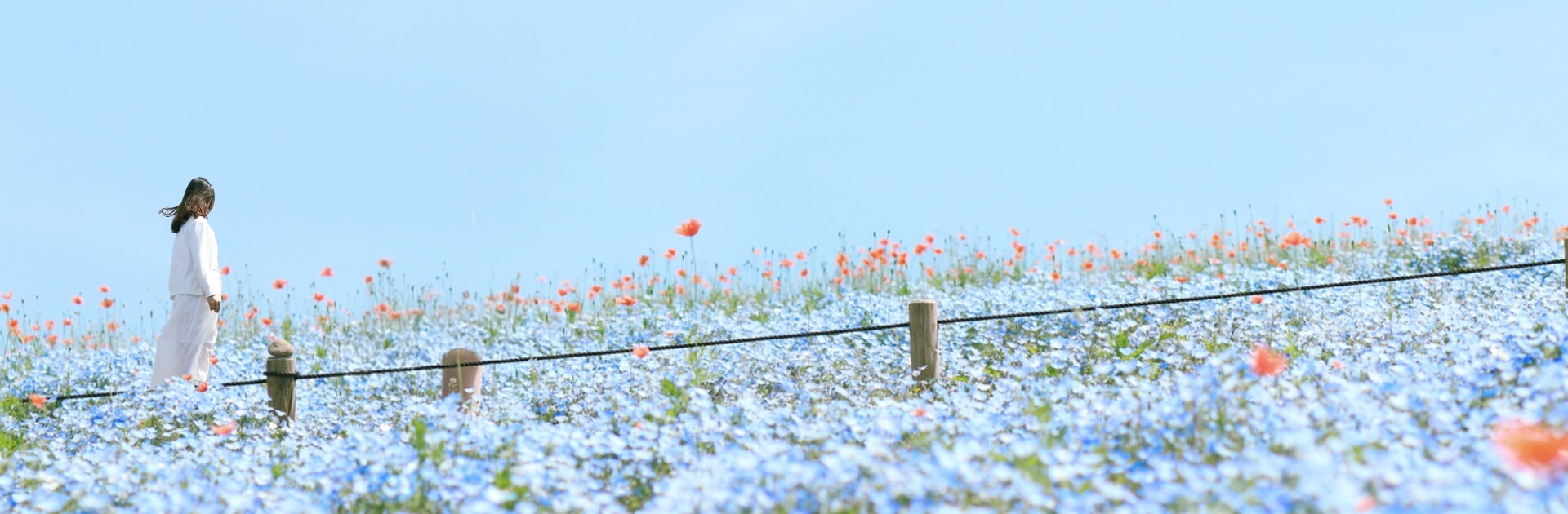 Let's admire beautiful nemophila flowers at Hitachi Seaside Park that was selected as one of the 34 most beautiful places in Japan by CNN, and wisteria at Ashikaga Flower Park, the only spot in Japan that was selected as one of CNN Top 10 Dream Destination in the World.