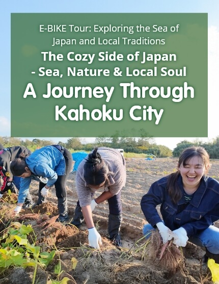 Experience a seamless journey through Kahoku, where nature and local life meet. Ride your E-BIKE past stunning Sea of Japan coasts, rolling countryside, historic shrines, and the birthplace of a world-renowned philosopher, Kitaro Nishida.