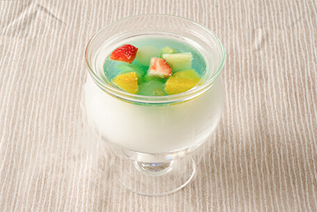 In "Assiette Désert," enjoy the sweetness of Tanba and Tango with Tanba tea, Tanba large red beans, mousse and jelly inspired by Yuhigaura, and Beni Madonna sorbet. -
