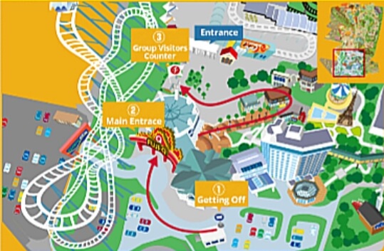 정문 출입구를 지나 단체접수카운터(Group visitors counter)에 방문해주시길 바랍니다.