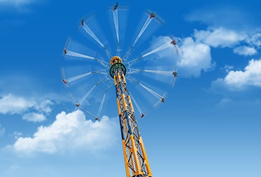 일본 첫 등장! 높이 50m를 넘는 하늘을 회전하는 그네! 높이 59m 타워 주변을 최고시속 51km로 회전하는 최고의 경치를 볼 수 있는 공중그네! 그네가 상승과 하강을 반복하며 빙글빙글 회전! 최고도달점은 무려 47m!