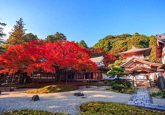寺院境內被隨四季流轉的自然美景所包圍,每次造訪都能欣賞到如春季新綠、秋季紅葉等帶有不同風情的美景。建議遊客在時光靜靜流逝的空間中,享受平靜安穩的自在時光。