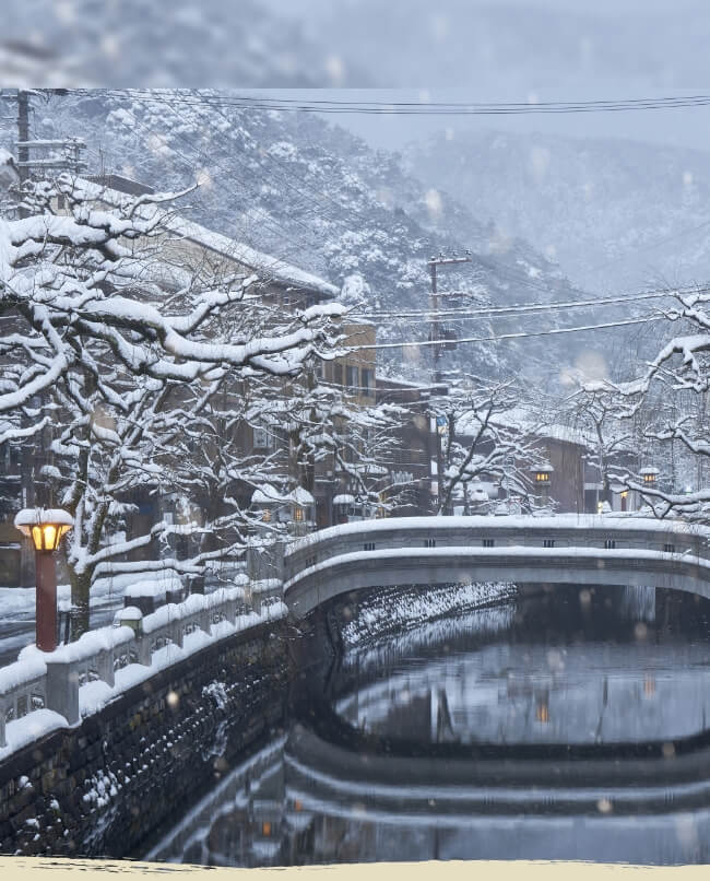 日本冬季特有的旅遊行程,前往城崎享用豪華的松葉蟹午間套餐。大啖螃蟹後,就到《日本米其林綠色指南》列為二星的城崎溫泉街散步吧!